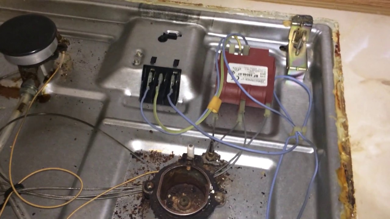 - Une autre raison est des problèmes avec le transformateur d'allumage. O a deux enroulements, chacun alimentant deux brûleurs. Si vous mesurez la résistance entre deux brûleurs opposés, elle devrait être d'environ 600 ohms - c'est la résistance des enroulements du transformateur. S'il est inférieur, la raison en est probablement un bouton bloqué (sale). Nous les démontons, les nettoyons, les mettons en place.