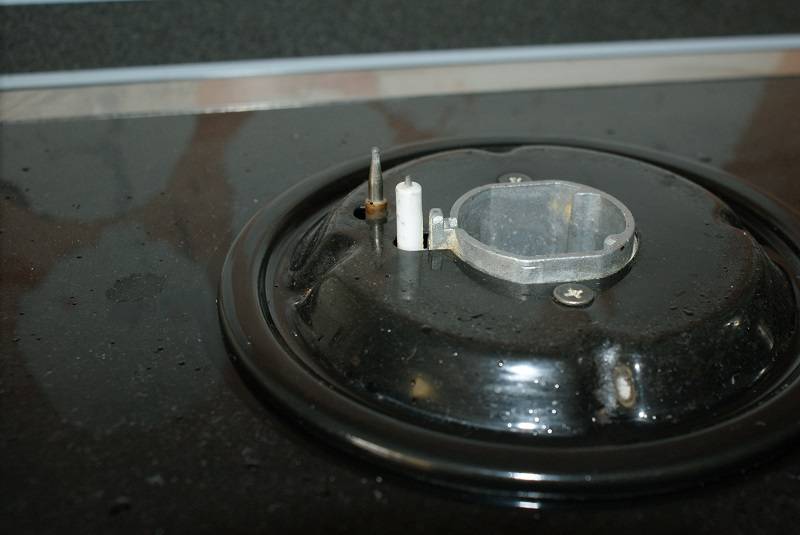 Vous devez d'abord essayer de nettoyer tous les capteurs. Ils deviennent rapidement envahis par la graisse pendant le fonctionnement, ils nécessitent donc un nettoyage périodique. Tout d'abord, éteignez l'alimentation, retirez les brûleurs, retirez les poignées, dévissez le panneau avant. Nous trouvons un thermocouple sur un brûleur qui ne fonctionne pas. Il s'agit d'une petite broche métallique située à proximité du brûleur à gaz. Dans certains modèles de plaques de cuisson à gaz, il peut simplement être inséré, dans d'autres, il y a un loquet. Il est nécessaire de retirer le capteur de la prise et de le nettoyer de toute contamination. Utilisez des produits chimiques pour lave-vaisselle de cuisine ordinaires ou quelque chose de plus fort