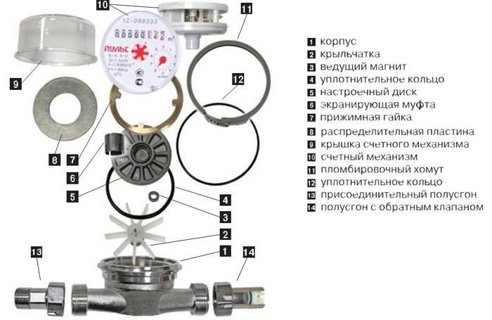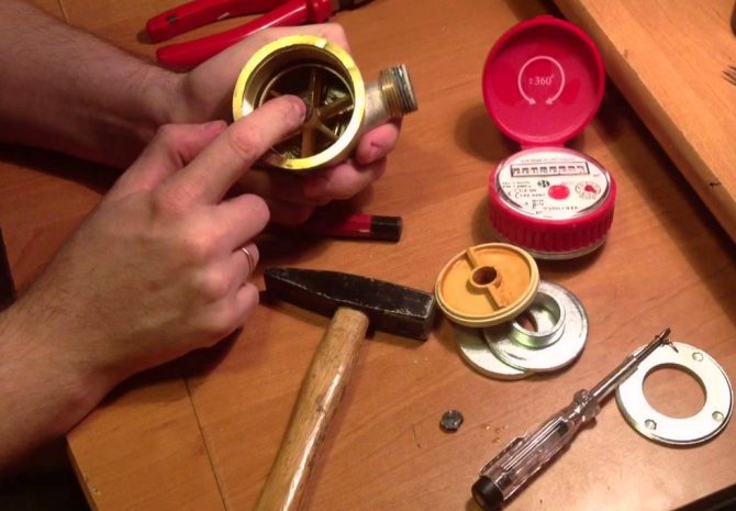 À l'intérieur des compteurs d'eau, il y a une turbine, qui est entraînée par un courant d'eau qui passe, reflétant le débit sur l'affichage du compteur d'eau. Le mécanisme de la turbine est conçu pour pouvoir tourner dans les deux sens. Dans de rares cas, sa destruction partielle conduit au fait que le compteur tournera dans le sens opposé. Un compteur d'eau cassé doit être remplacé.