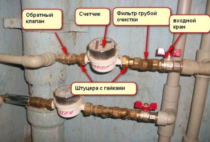 6. Si la cause est un compteur d'eau cassé, vous devez le remplacer.Pour ce faire, l'appareil est retiré avec une clé à deux endroits (à l'entrée et à la sortie). Les joints doivent être changés. Le nouveau compteur d'eau est resserré avec de nouveaux écrous qui viennent avec.