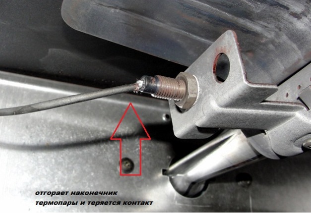 Le plus souvent, un tel dysfonctionnement consiste en l'absence de contact entre le thermocouple et l'électrovanne. Moins souvent, il y a des cas où la torche de feu n'atteint tout simplement pas le capteur de température.
