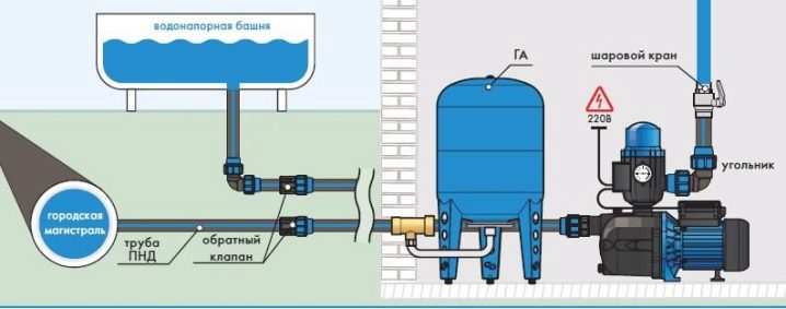 Lors de la mise en marche et du fonctionnement de la station de pompage, son réservoir d'hydroaccumulation sera presque entièrement rempli d'eau, à l'exception du "coussin" d'air derrière la membrane qui assurera un fonctionnement plus fluide de la station. Lorsque la station de pompage est éteinte ou, par exemple, que l'électricité est coupée et que l'eau est tirée du système, la pression du liquide commencera à baisser et l'air le poussera progressivement hors du réservoir, fournissant un approvisionnement en eau dans la mesure de son volume.