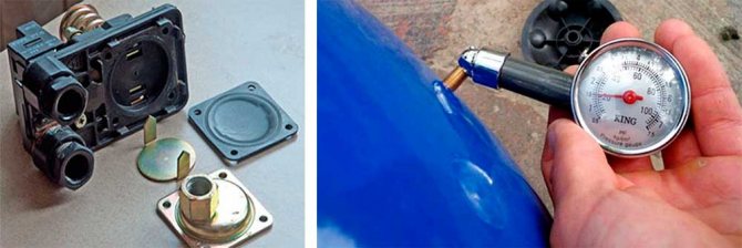 - il n'y a pas de pression dans le réservoir - à l'aide d'une pompe à air spéciale, pompez de l'air dans la chambre de l'accumulateur;