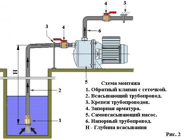 - Pompe auto-amorçante. Principe de fonctionnement: la pompe aspire indépendamment le liquide de l'évidement à l'aide d'un tube dont une extrémité se trouve dans le puits, l'autre est reliée à l'équipement.