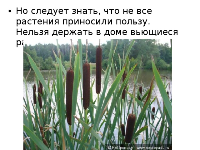 1. Le roseau est une plante des marais, comme vous le savez, les longues racines pénètrent profondément dans le limon. Les endroits marécageux depuis les temps anciens étaient considérés comme l'habitat des esprits impurs et mauvais. Beaucoup de gens associent les marais à la tristesse, à la tristesse, au désir. Les roseaux dans la maison sont de mauvais augure, car la plante attire les maladies, la mort, le blues, les habitants de la maison commencent à vieillir rapidement.