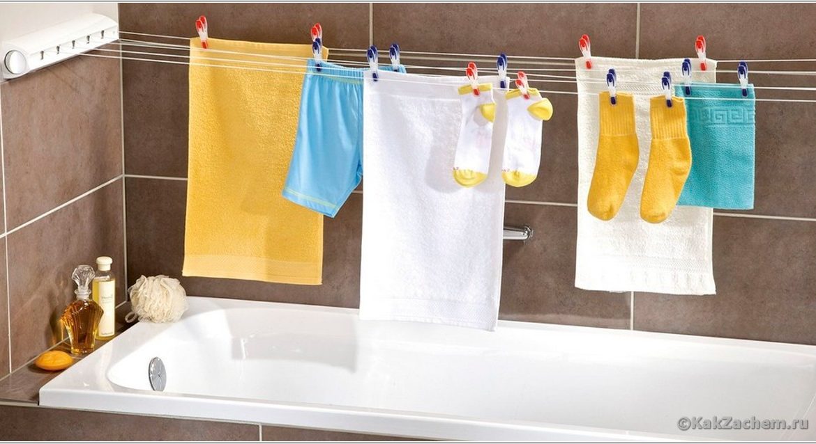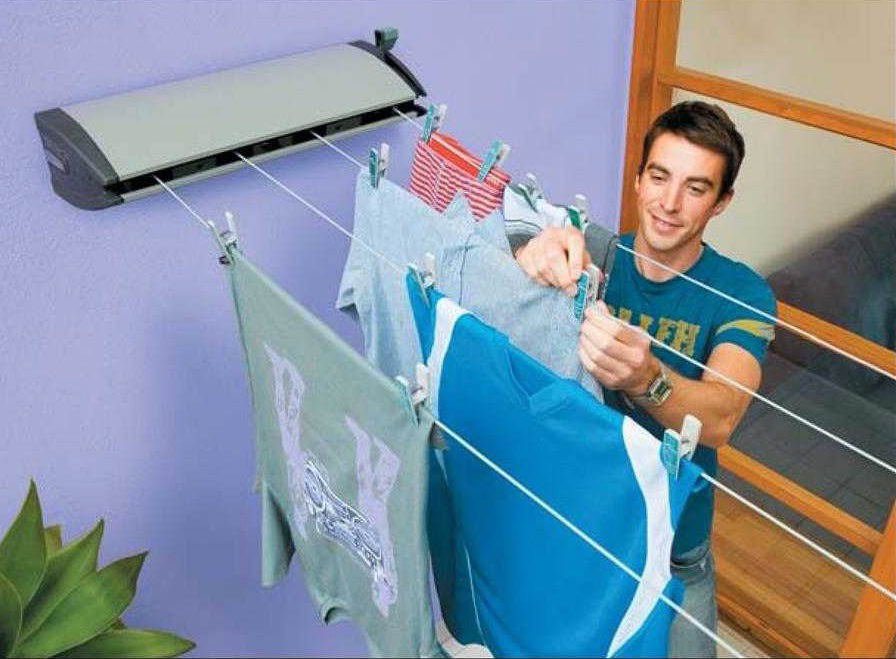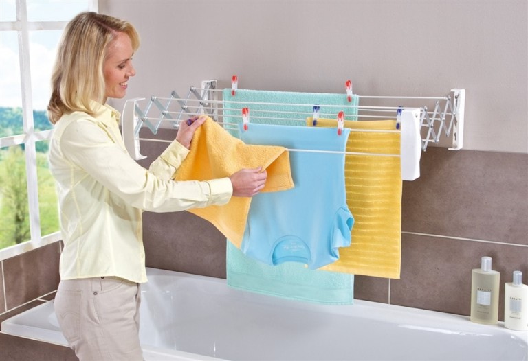 La deuxième façon consiste à organiser un séchoir impromptu sous la fenêtre avec des cordes. Cette option est pertinente pour les personnes vivant aux étages inférieurs et dans les régions ensoleillées. Si aucune des options ne vous convient, la seule bonne décision serait d'acheter un séchoir pliant spécial. Il est nécessaire d'installer une telle structure dans un endroit bien ventilé (une salle de bain ou une chambre ne fonctionnera pas).Si la maison a une zone clôturée, les arrière-cours ou les toits des immeubles de grande hauteur peuvent être utilisés pour sécher les vêtements.
