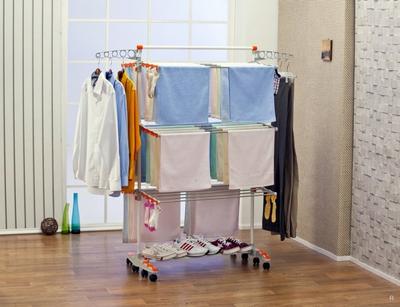 3. Séchoir au sol. Compact et stable, il peut être temporairement placé dans n'importe quelle pièce de l'appartement et, après séchage, il est retiré dans le dressing ou le couloir.