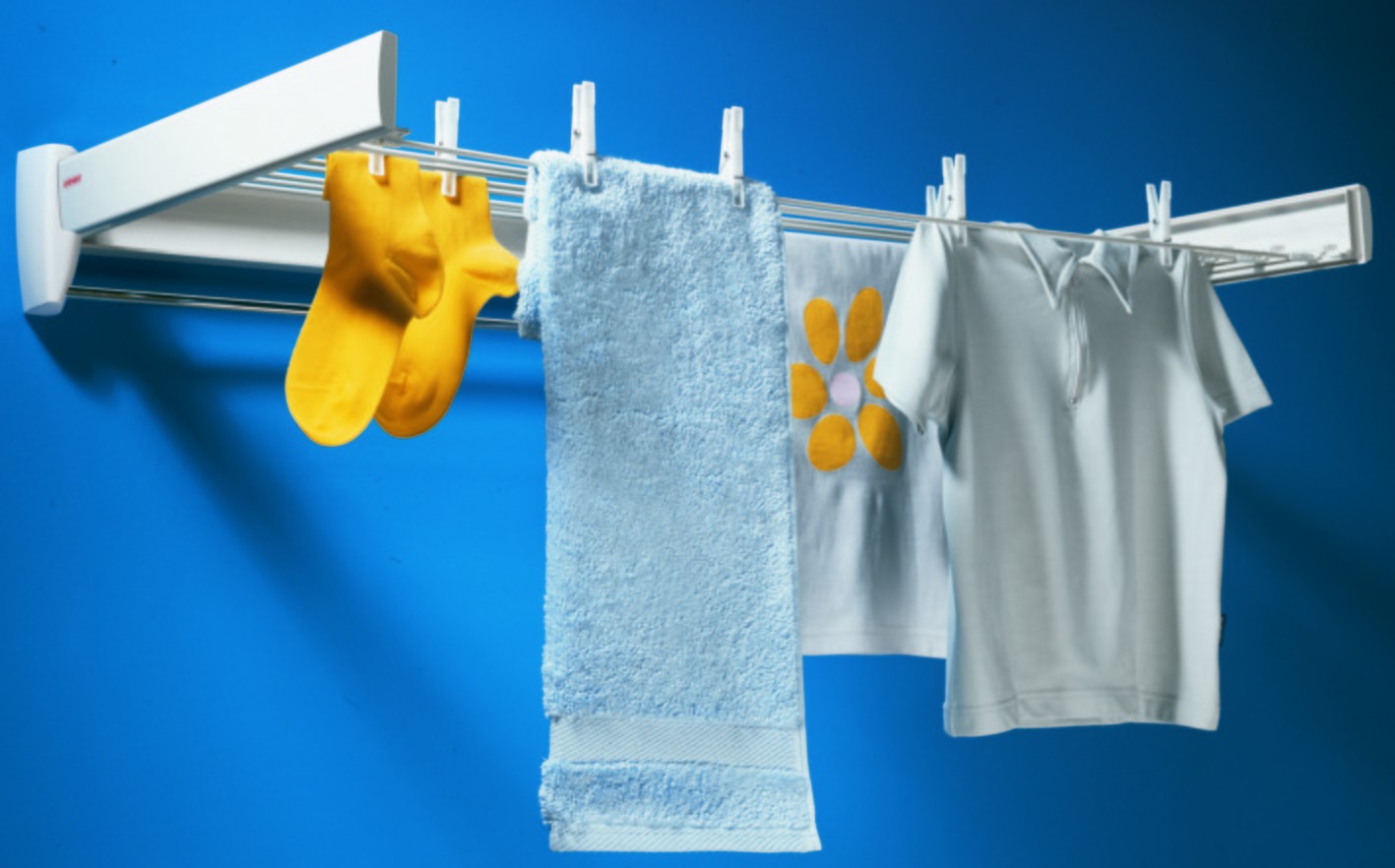 • au soleil - avant de suspendre les choses, il est préférable de les retourner pour éviter la décoloration des tissus; sous les rayons du soleil, le séchage ne prendra pas plus d'une heure;
