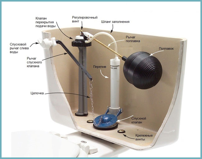 Pour commencer, vous pouvez essayer de réparer/régler le système de vidange. L'accumulation d'eau sur les parois du réservoir peut être causée justement par un dysfonctionnement de cet appareil. Si le robinet de vidange n'est pas bien en place, l'eau peut constamment pénétrer dans les toilettes.Le réservoir dans ce cas sera continuellement rempli et refroidi. Dans une telle situation, le volume de liquide de condensation peut atteindre 1 à 2 litres par jour.