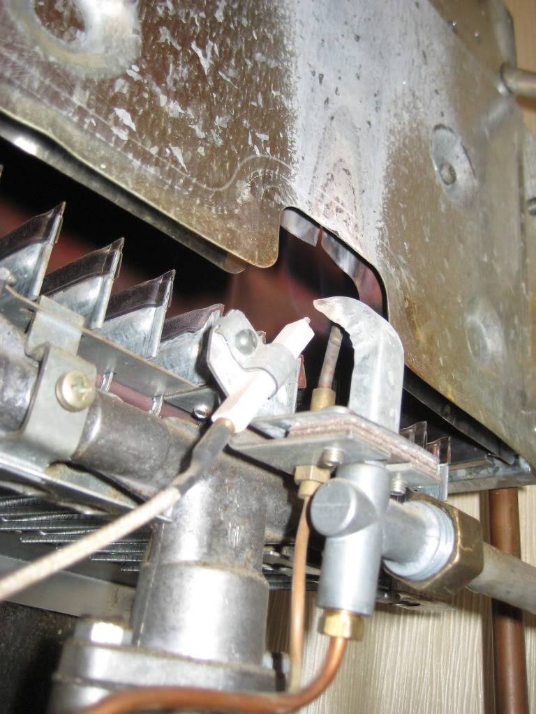 • Le geyser clique, mais ne s'enflamme pas - les contacts de l'unité d'allumage sont oxydés. Le module n'est pas démonté et doit être remplacé. Le catalyseur du fait que le geyser crépite, mais ne s'enflamme pas, peut être des batteries mortes.