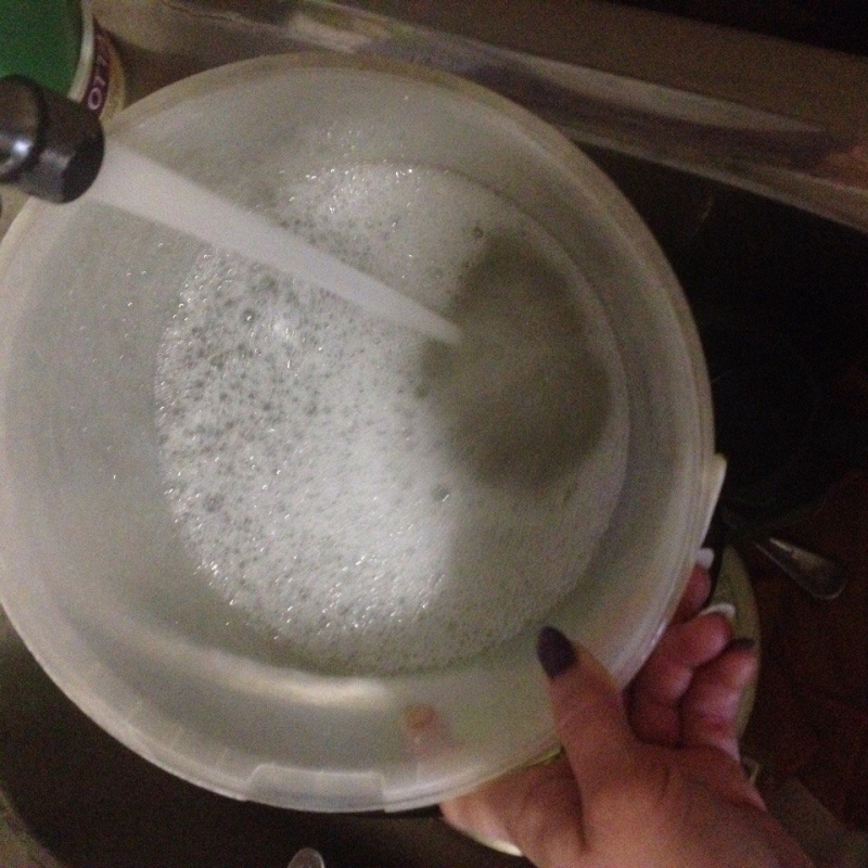Désinfection des parois du puits avec une solution d'un agent contenant du chlore comme "Whiteness" (0,5 l de l'agent par seau d'eau).