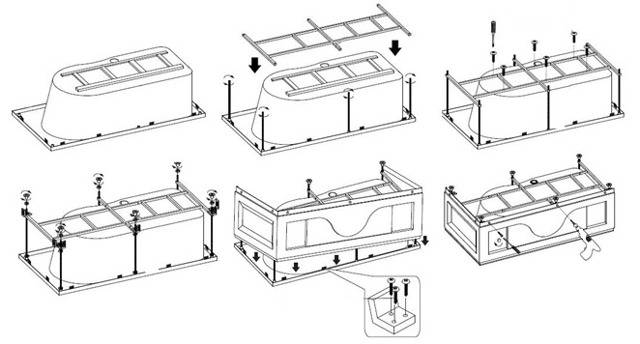 Toutes ces choses se trouvent le plus souvent dans une boîte avec une palette. Ou dans une boîte avec toutes les pièces détachées, vous pouvez trouver des pattes, un siphon.