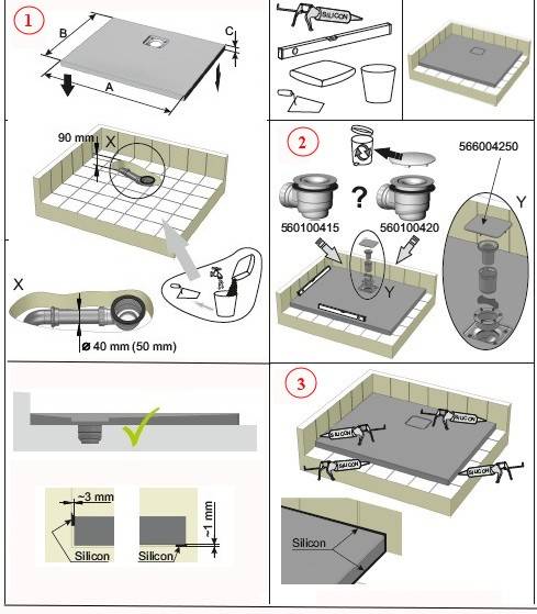 Dans la plupart des cas, le niveau du sol du receveur de douche s'élève au-dessus du niveau du sol de toute la pièce pour permettre l'installation d'équipements d'évacuation. Par exemple, dans les appartements, les conduites d'égout sont généralement posées au niveau du sol. La même méthode est utilisée dans la plupart des maisons privées. Par conséquent, pour assurer la pente souhaitée, le trou de vidange dans le bac doit être situé au-dessus du niveau du sol.