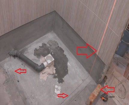 Lors de l'agencement d'un receveur de douche en carrelage à faire soi-même, vous pouvez choisir deux manières d'organiser l'inclinaison du sol souhaitée : des limiteurs en bois amovibles ou un cadre métallique fixe. La deuxième option est plus pratique et fiable, car elle augmente la résistance de la chape et ne nécessite pas de scellement ultérieur des zones d'où les guides sont retirés.