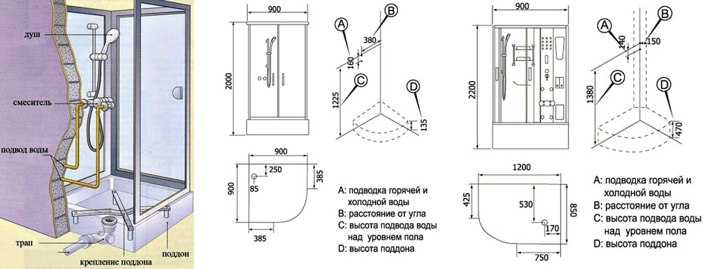 Après avoir décidé de créer vous-même une cabine, commencez par élaborer un plan et esquisser un croquis, considérez la taille de la pièce, l'emplacement des services publics et les caractéristiques des tuyaux de raccordement à l'eau chaude et froide.L'installation d'un espace douche sans receveur est une option pratique et originale pour une baignoire.