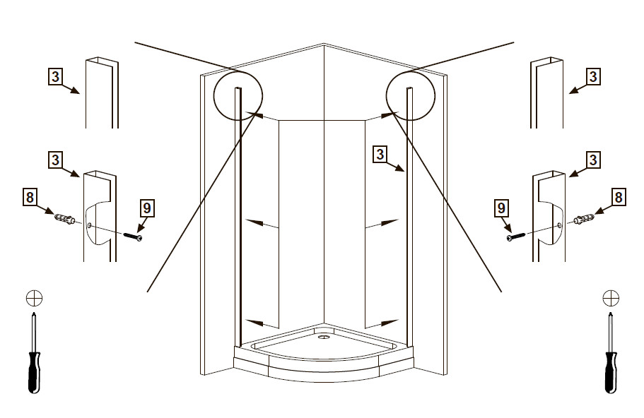 - Schéma de montage général d'un receveur de douche rectangulaire