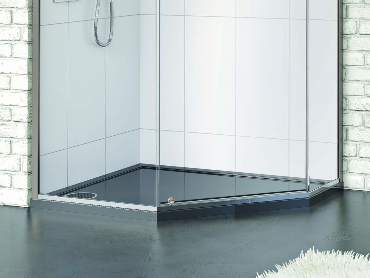 Souvent, les receveurs de douche profonds ont une forme semi-circulaire/angulaire. Un tel appareil sanitaire peut être organiquement intégré dans un coin approprié de la salle de bain, obtenant un maximum d'espace utilisable avec un espace libre occupé minimum. Les palettes les plus profondes organiquement se combinent avec des portes en polystyrène ou en verre.