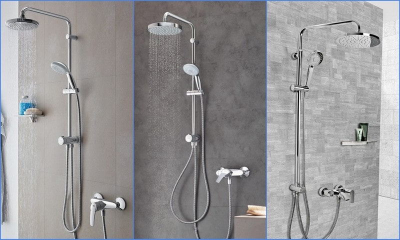 Certes, il ne faut pas non plus confondre la colonne de douche complète avec un mitigeur et juste un mitigeur, auquel est fixée une barre d'arrosoir. Ce sont des choses complètement différentes - un support de douche avec un mitigeur vous permet de vous débarrasser du tuyau, ce dont beaucoup rêveraient, mais le mitigeur avec une tige dans le kit n'offre pas une telle opportunité.