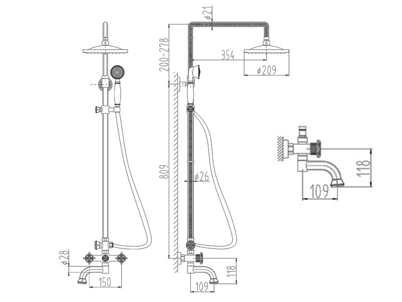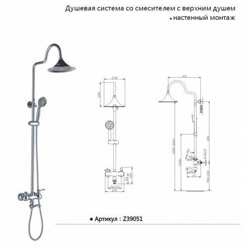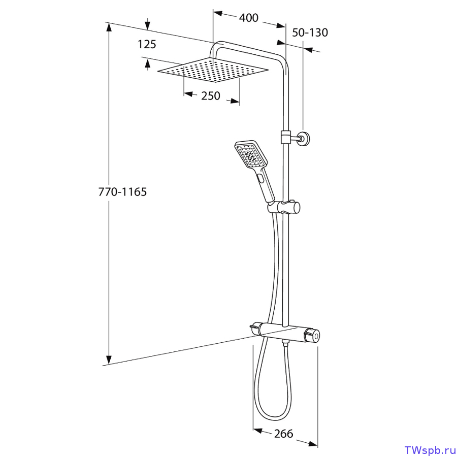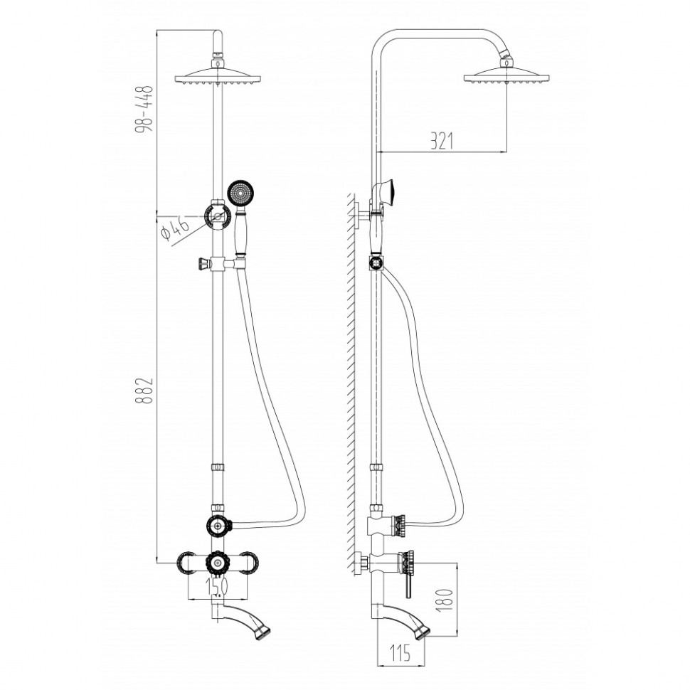 - un support mural pour douchette - une colonne de douche classique avec mitigeur est disponible avec un support sur barre;