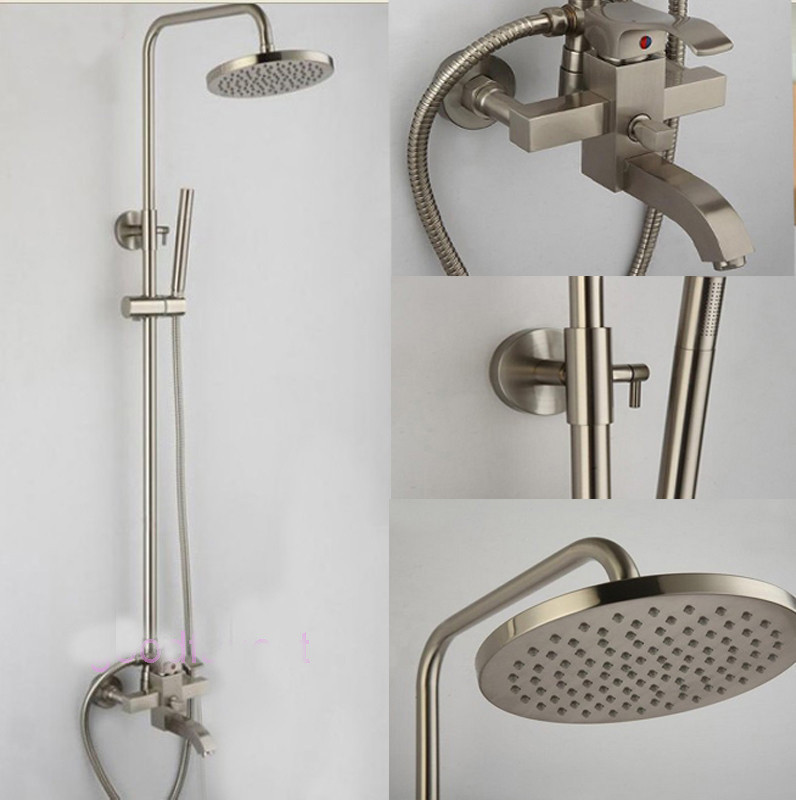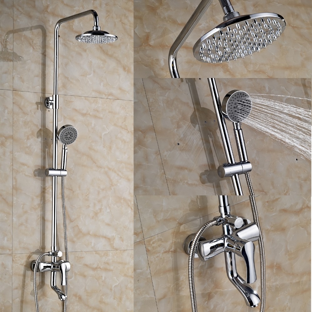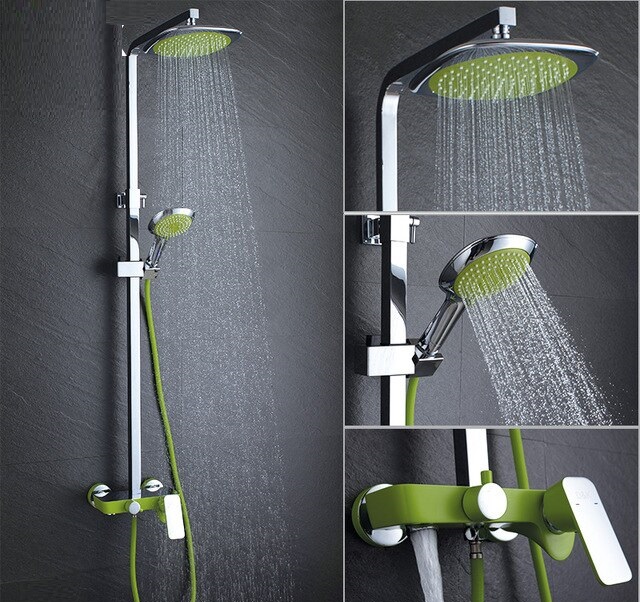 En règle générale, il y a deux arrosoirs dans de tels racks - un grand et un petit. Le grand, fixé en hauteur, fonctionne comme une douche à effet pluie et peut atteindre près d'un mètre de large, tandis que le second, petit, est un arrosoir sur un tuyau flexible ordinaire et est suspendu plus bas. Il est facile à retirer et à régler. Un tel système est très pratique - si vous le souhaitez, vous pouvez vous tenir sous la "pluie battante" et, si nécessaire, utiliser une douche ordinaire, même assis au fond de la baignoire.