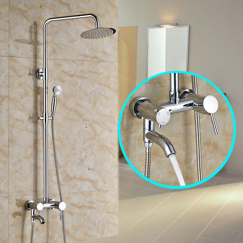 La principale commodité d'un tel rack est la possibilité de couper l'eau dans la douche avec un levier spécial. Mais changer la hauteur de l'arrosoir, en règle générale, dans de tels racks est impossible.De plus, certains problèmes de connexion peuvent survenir - par exemple, il sera difficile de fixer le support au robinet, où le tuyau de douche est connecté par le bas.