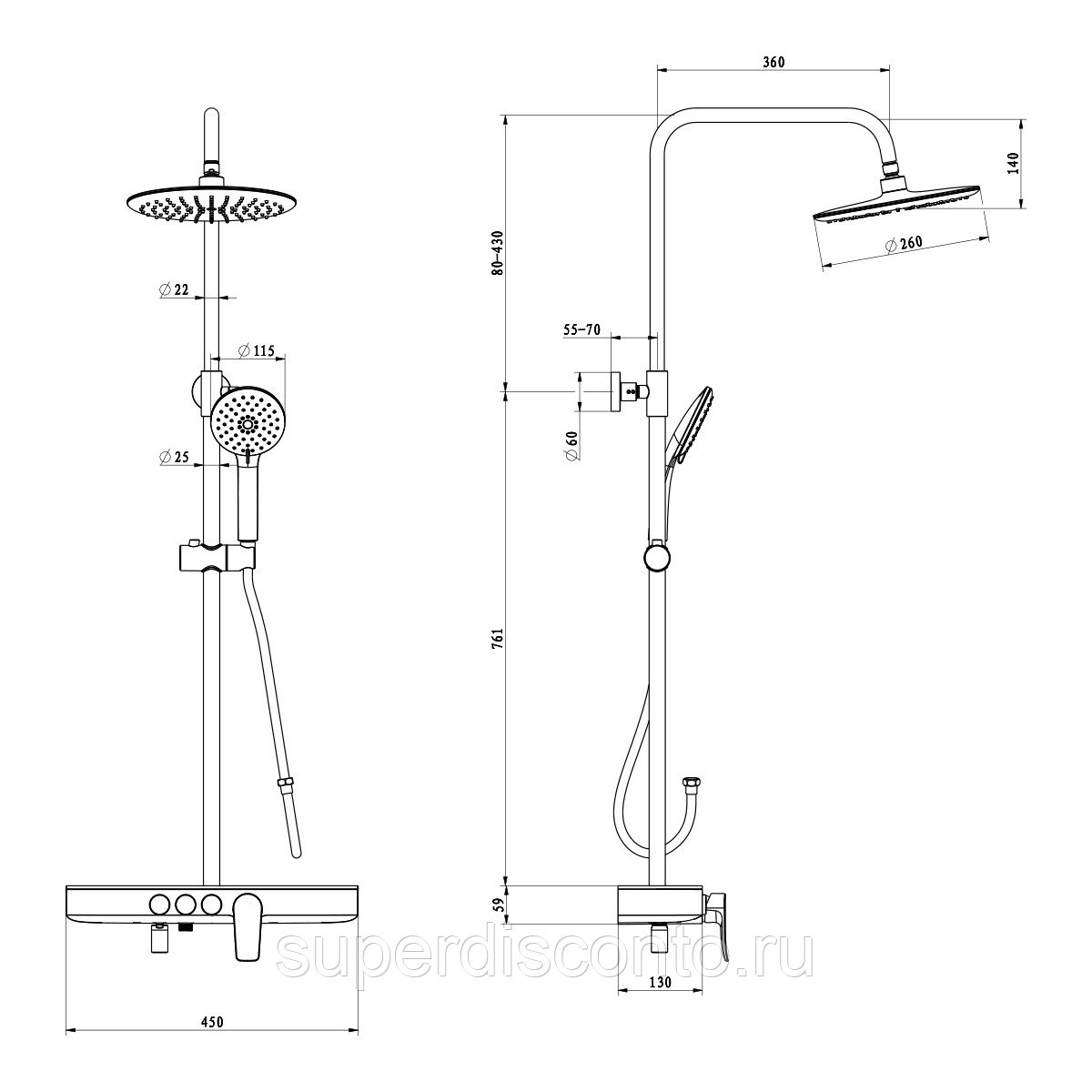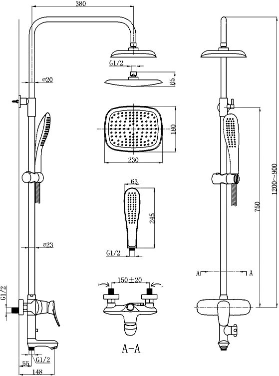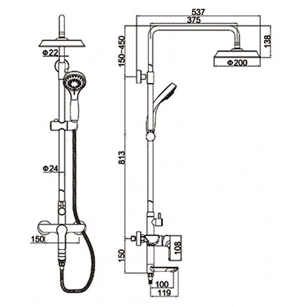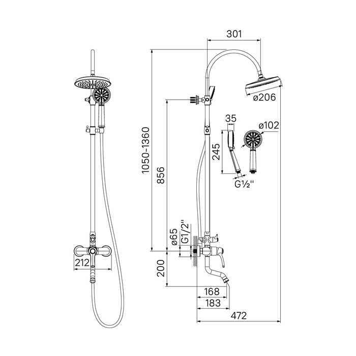 - Colonne de douche avec douche de tête