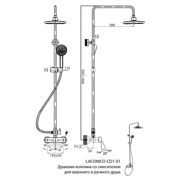 - avec un mélangeur de type ouvert - le mélangeur-tuyau-arrosoir est situé dans un espace ouvert.