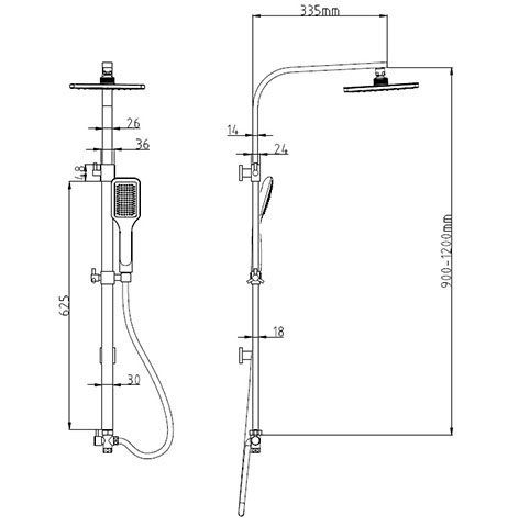 - interrupteurs à bouton-poussoir - une colonne de douche avec bec est équipée d'un côté allongé de la barre, sur lequel sont placés des boutons de commande;
