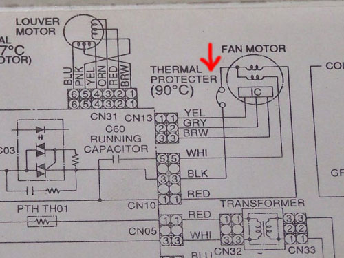 - moteur du ventilateur de l'unité intérieure.