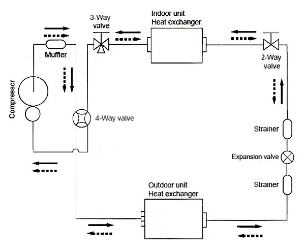 Le principe de leur fonctionnement repose sur une modification de l'état d'agrégation du fréon en fonction de la pression et de la température dans un système fermé. Les appareils ne produisent pas indépendamment de la chaleur et du froid, mais les transfèrent uniquement, selon le mode sélectionné, de l'intérieur vers l'extérieur ou vice versa.