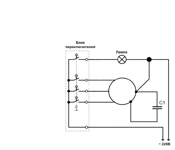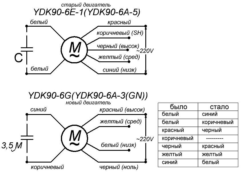 - Moteur PG - à l'aide d'un élément de régulation (triac ou thyristor), la tension est appliquée à travers un enroulement composé de deux parties. Différentes vitesses de ventilateur sont obtenues en modifiant l'amplitude de la tension de commande.
