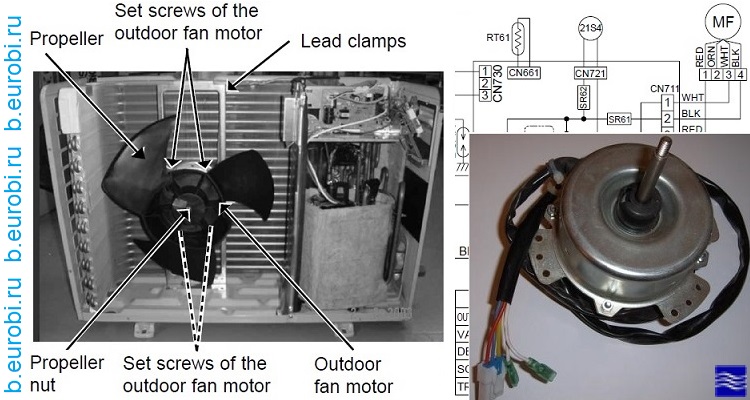 - moteur de ventilateur du module extérieur ;