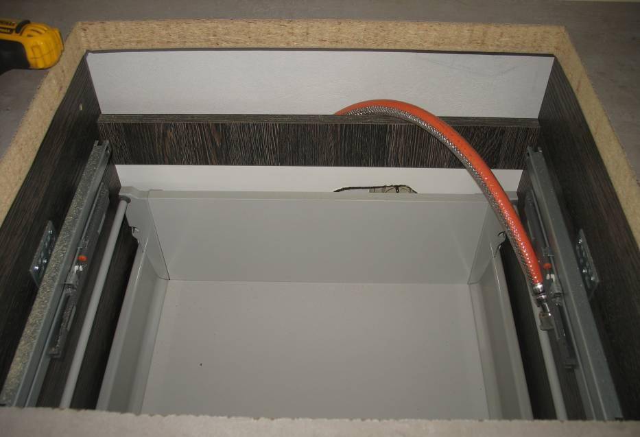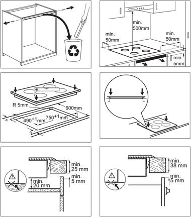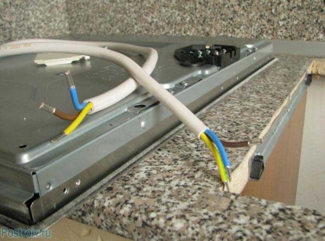 La connexion indépendante de la surface nécessite d'abord une installation compétente du panneau dans la découpe préparée de l'ensemble de cuisine.