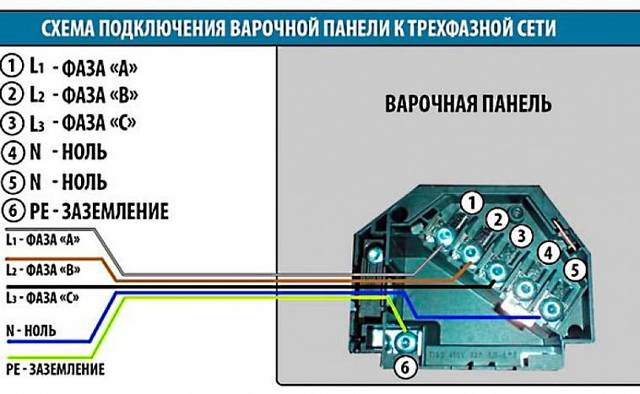 Pour connecter la cuisinière à induction, vous devrez acheter un câble réseau à trois conducteurs capable de supporter la puissance de l'équipement. Sous le panneau d'induction, il y a une boîte spéciale avec des bornes pour connecter les fils. Sur la surface de la boîte ou à l'intérieur, des symboles schématiques indiquent où connecter les fils.