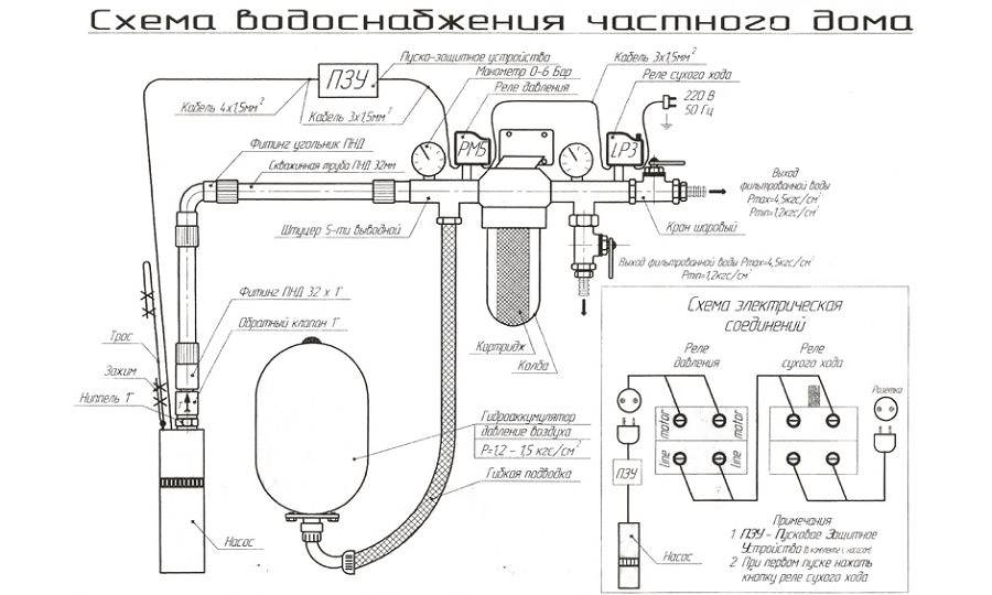 À la base, le schéma de connexion ne change pas, mais il y a quelques nuances qu'il est important de connaître. Avant le raccordement, il est nécessaire de calculer la pression de travail et la pression minimale.Différents systèmes peuvent nécessiter un indicateur de pression d'eau différent, mais la norme pour les petits systèmes d'alimentation en eau avec un petit nombre de points de prise d'eau est une pression de 1,5 atm
