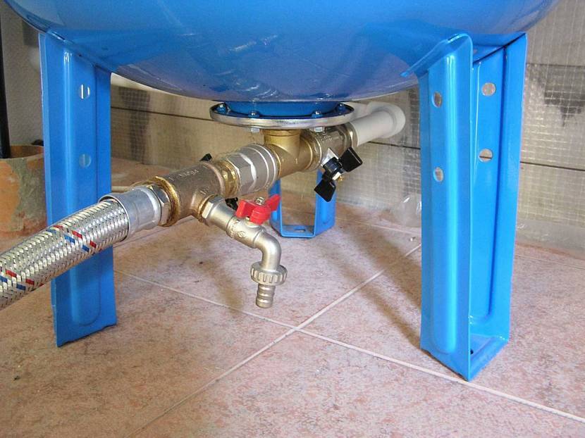 - Au moyen d'une conduite d'eau, le récepteur est rempli d'eau, ou plutôt d'une membrane en caoutchouc. L'approvisionnement en eau peut être effectué non seulement à partir de l'approvisionnement en eau, mais également à partir d'un puits ou d'un puits.