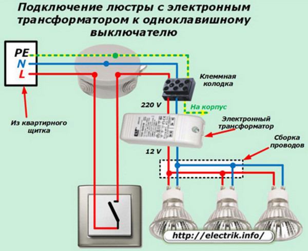 De plus, peu importe - vous devez connecter le lustre à un seul interrupteur ou à un double. L'installation, bien sûr, est différente, mais les deux sont faciles.
