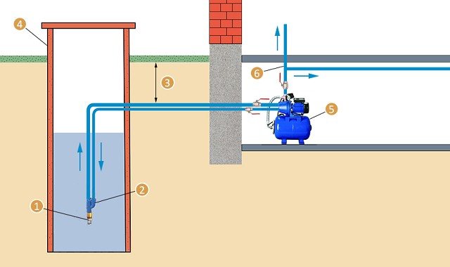 La principale différence entre cette méthode d'installation est que le pipeline menant à la maison longe en fait la surface ou est enterré à une faible profondeur (tout le monde n'a pas une fosse sous la profondeur de congélation). Si la station de pompage est installée dans le pays, ça va, l'équipement est généralement retiré pour l'hiver. Mais si l'alimentation en eau est prévue pour être utilisée en hiver, elle doit être chauffée (avec un câble chauffant) et isolée. Sinon ça ne marchera pas.