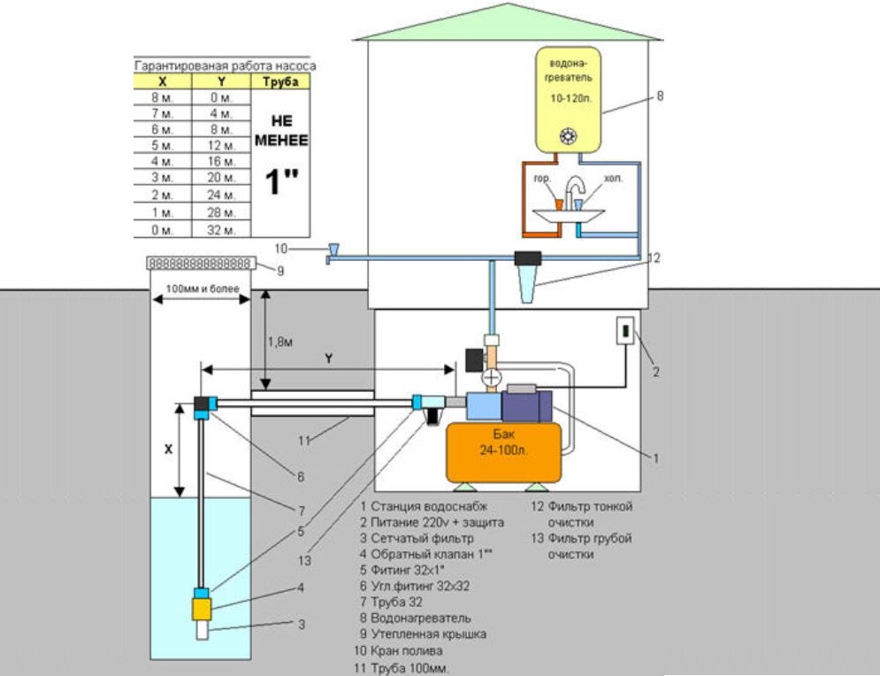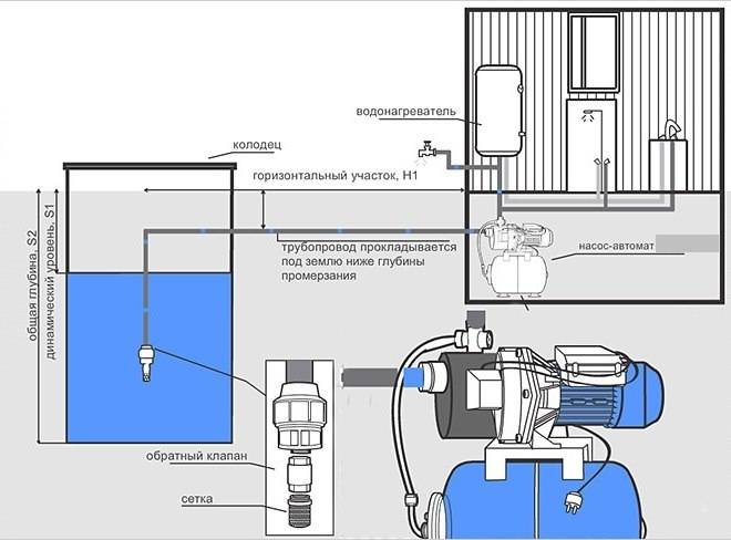 La procédure de création d'un système d'alimentation en eau peut être simplifiée en établissant d'abord un schéma de raccordement.La pompe doit être choisie de sorte qu'elle se caractérise par de bonnes propriétés pression-débit. L'équipement doit être isolé pour empêcher l'eau du système de geler lorsque la température baisse.