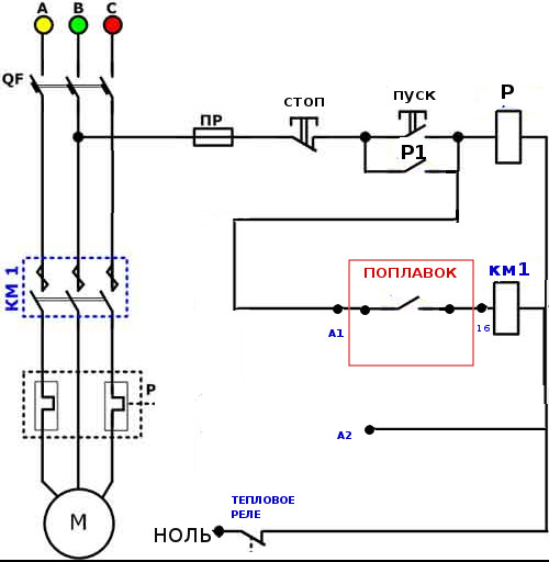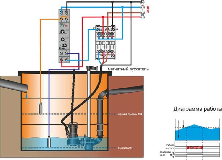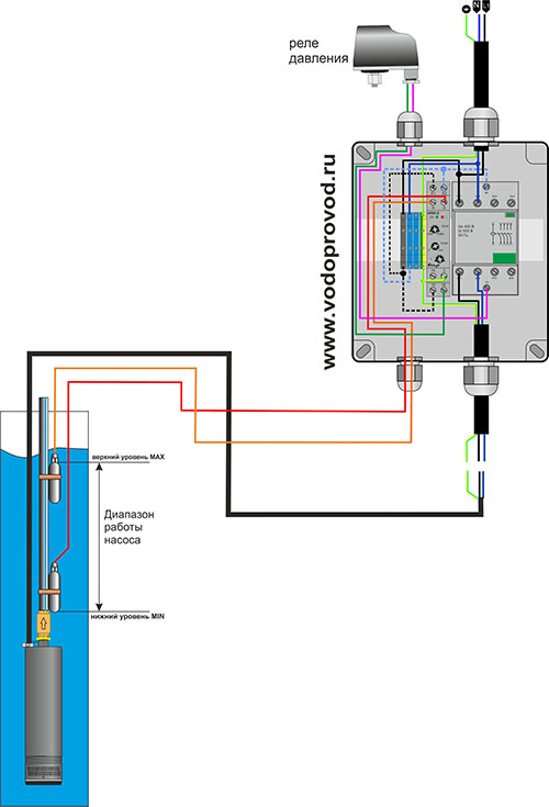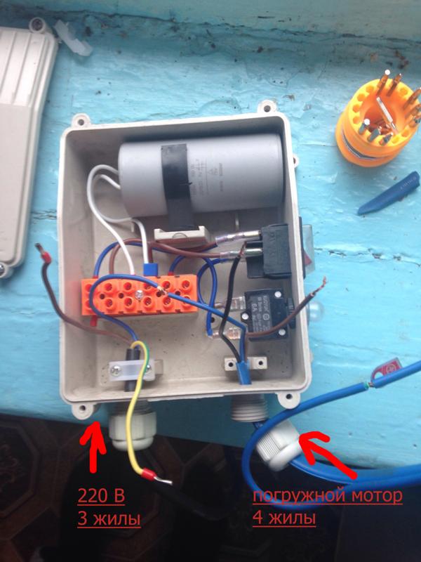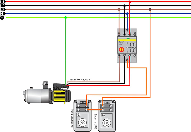 Important! Cette connexion ne peut pas être considérée comme correcte. Il ne montre que le principe général de connexion d'une pompe de puits