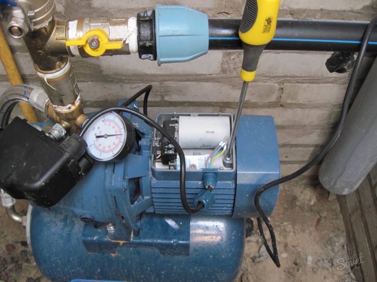 L'installation d'un pressostat équipé d'un manomètre s'effectue en tout point du système de pompage, dont l'inconvénient est l'absence de protection contre la "marche à sec". Le pressostat fournit de l'électricité à l'équipement si la pression commence à chuter. La pompe continuera à fonctionner jusqu'à ce que tout le système tombe en panne. Son fonctionnement doit être régulé, par conséquent, un accumulateur hydraulique est intégré au système, qui remplit les fonctions suivantes :