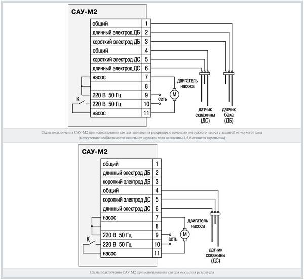 Un flotteur à trois fils est universel.Il convient non seulement pour surveiller la marche à sec, mais également pour arrêter l'unité en cas de débordement. La commutation des modes s'y produit entre deux fils connectés et un fil commun.