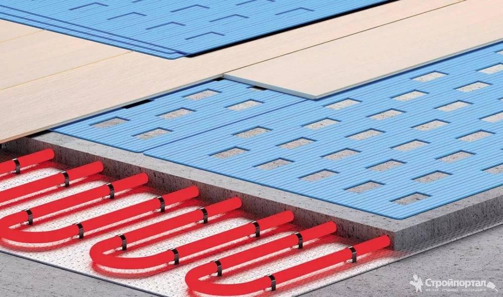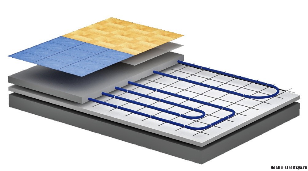 Je voudrais également noter que les dispositifs d'eau habituels peuvent être posés sur des sols en bois et en béton. Si le tuyau est endommagé, le condensat commencera à s'accumuler. Dans le même temps, même une fuite insignifiante entraînera certainement une inondation des étages inférieurs et des sous-sols. Pour l'installation d'un sol chaud, un substrat large est nécessaire. Mais la qualité du gâteau construit dépendra directement de la qualité des matériaux utilisés.