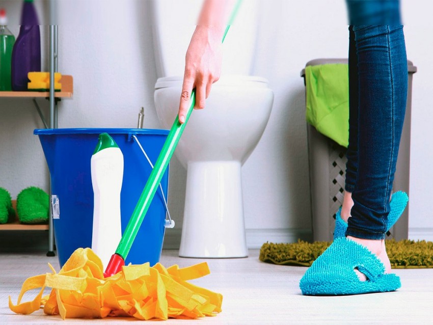 Allez plus loin dans la salle de bain et les toilettes et enlevez toute la saleté qui s'y trouve. Ces pièces sont visitées plus souvent que d'autres, de sorte que des microbes dangereux pour l'homme s'y propagent. Pour éviter cela, il vous faut :