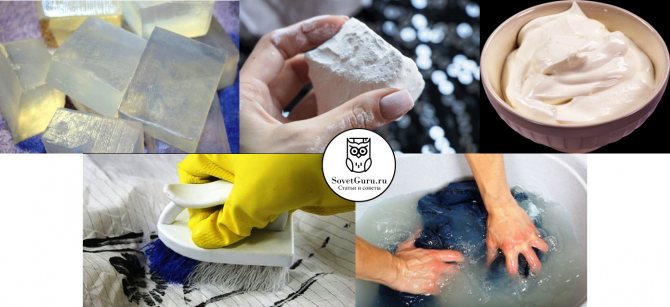 Les vieilles taches de graisse qui restent sur les vêtements même après le lavage (si vous les avez lavés soudainement sans prétraitement) sont beaucoup plus difficiles à traiter. Pour cela, nous avons besoin de moyens plus puissants. Commençons nos tentatives pour nettoyer les vieilles taches de graisse des vêtements avec du savon à lessive ordinaire.