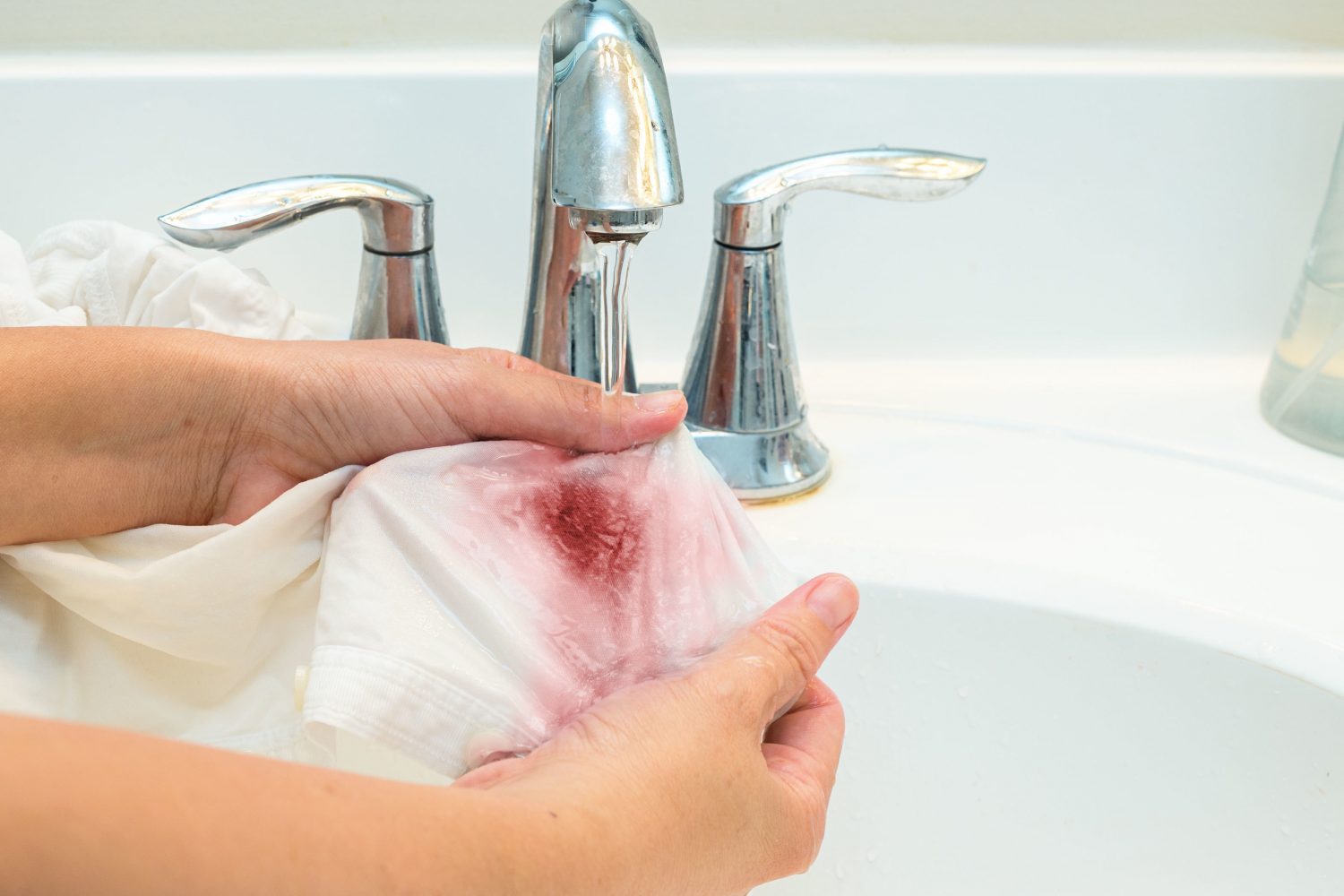 Des taches sur des choses blanches, qui sont des restes de sang, de l'eau froide et du savon à lessive aideront. L'endroit contaminé est abondamment frotté avec du savon à lessive noir, frotté et lavé à l'eau froide.