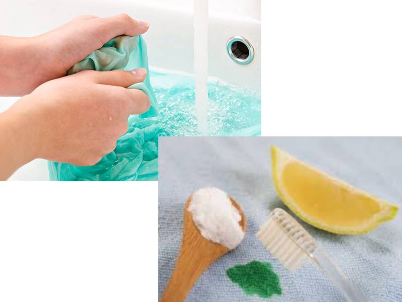 Le principe du détachage est le même que pour les vêtements : enlever les taches le plus tôt possible avant que la tache ne sèche.