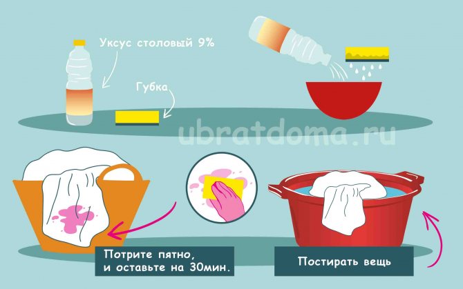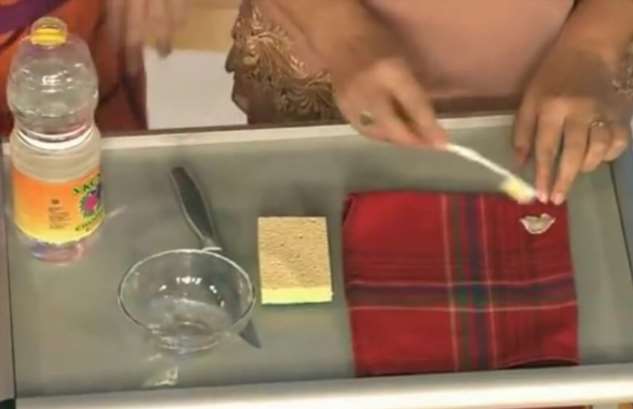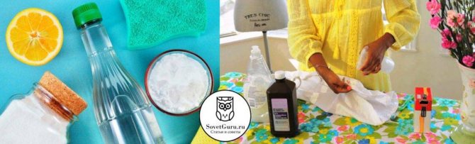 Le tissu est traité du mauvais côté, en plaçant des serviettes en papier blanc ou plusieurs couches de gaze de l'autre côté. Avant d'enlever les composés maison contenant de l'acide, vous devez vérifier la stabilité de la couche colorante du tissu dans une zone peu visible. Avant le traitement, la chose doit être bien secouée de la poussière.