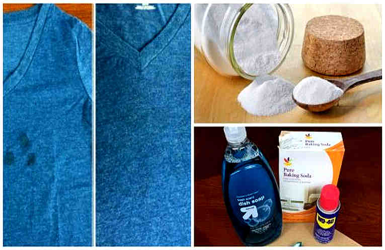 Les t-shirts sont cousus à partir de tricot fin. Les tricots nécessitent des soins délicats. Des taches sur un t-shirt blanc, une composition universelle pour la maison vous aidera. La solution consiste en 1 cuillère à soupe de bicarbonate de soude, un flacon de peroxyde d'hydrogène et une demi-cuillère à café de détergent à vaisselle.