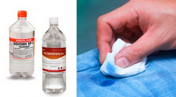 Trempez une serviette dans de l'essence et placez-la sous la tache, traitez l'endroit avec un coton-tige imbibé d'essence. Même la vieille tache devrait disparaître. Après un tel traitement, il est souhaitable de laver la chose. Au lieu de l'essence, vous pouvez utiliser de l'acétone ou du liquide dissolvant. De cette façon, les taches ne peuvent être éliminées que sur des vêtements colorés dans des tons sombres.